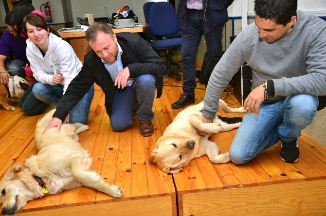 En concreto, lasintervenciones se realizan treinta minutos antes del comienzo de cada examen.Éstas consisten en una terapia de interacción con un perro previamente evaluadoy socializado. Por tanto, no todos los animales son aptos, sino que se utilizanejemplares entrenados y educados especialmente para dicha labor por un guíacanino, de manera que se comprueba la previsibilidad en su comportamiento y sucapacidad para saber manejar la situación. Por ello, tampoco se recurre a lasconsideradas como razas peligrosas. Enesta ocasión, los canes son aportados altruistamente por las entidades Can Ensino y Canina Melide